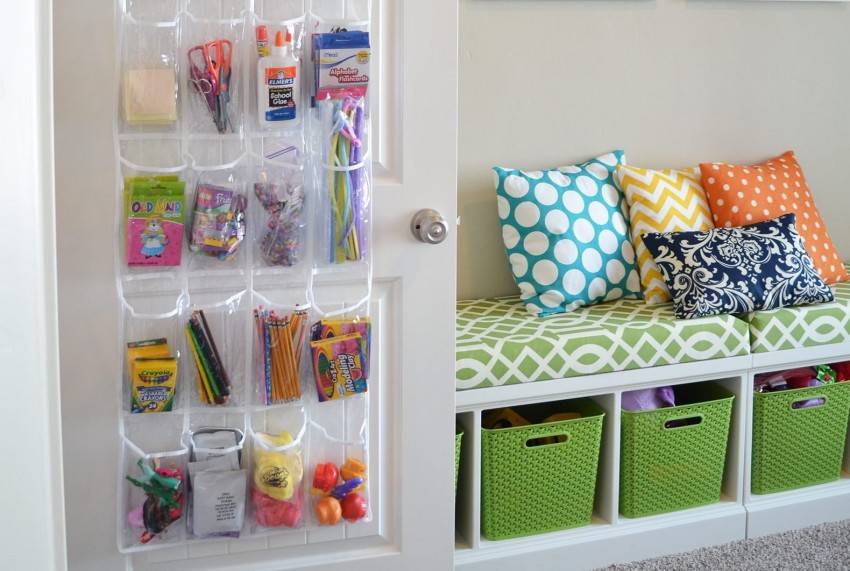 | Идеально подходят для хранения мелких вещей и деталей. Это могут быть спортивный инвентарь, как на фото, а в гараже – крепежные элементы и приспособления небольших размеров. |
