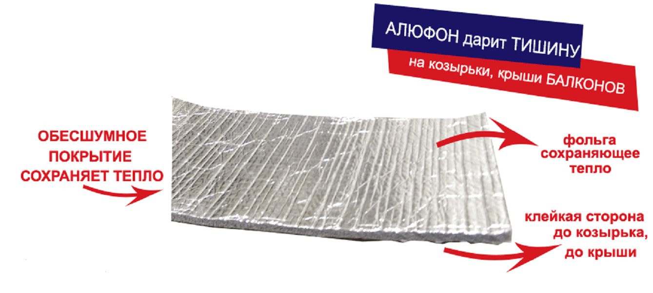 Для изоляции балконов и лоджий от шума применят материалы, наклеиваемые на внутреннюю поверхность металлического листа – плотный контакт изолирующего материала помимо гашения звука за счет своей структуры вызывает увеличение общей массы листа покрытия, а это дополнительно гасит звуковые колебания.
