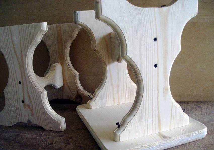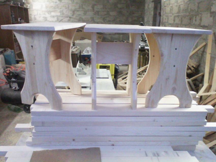 При выборе материала следует обратить внимание на древесину хвойных пород. В качестве ножек используется брус размером 45х45 мм высотой до 20 мм