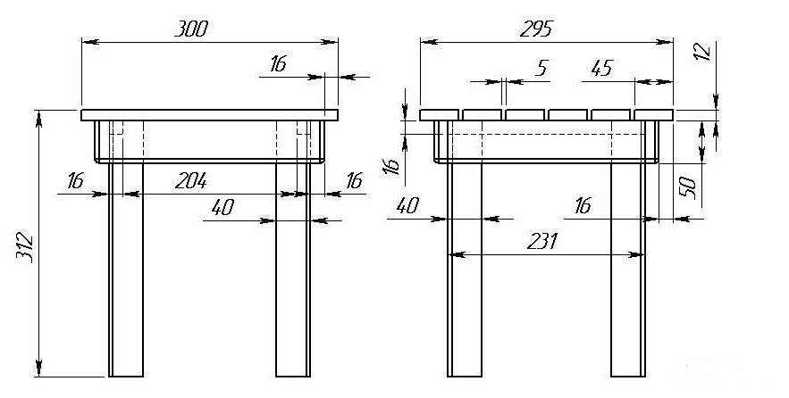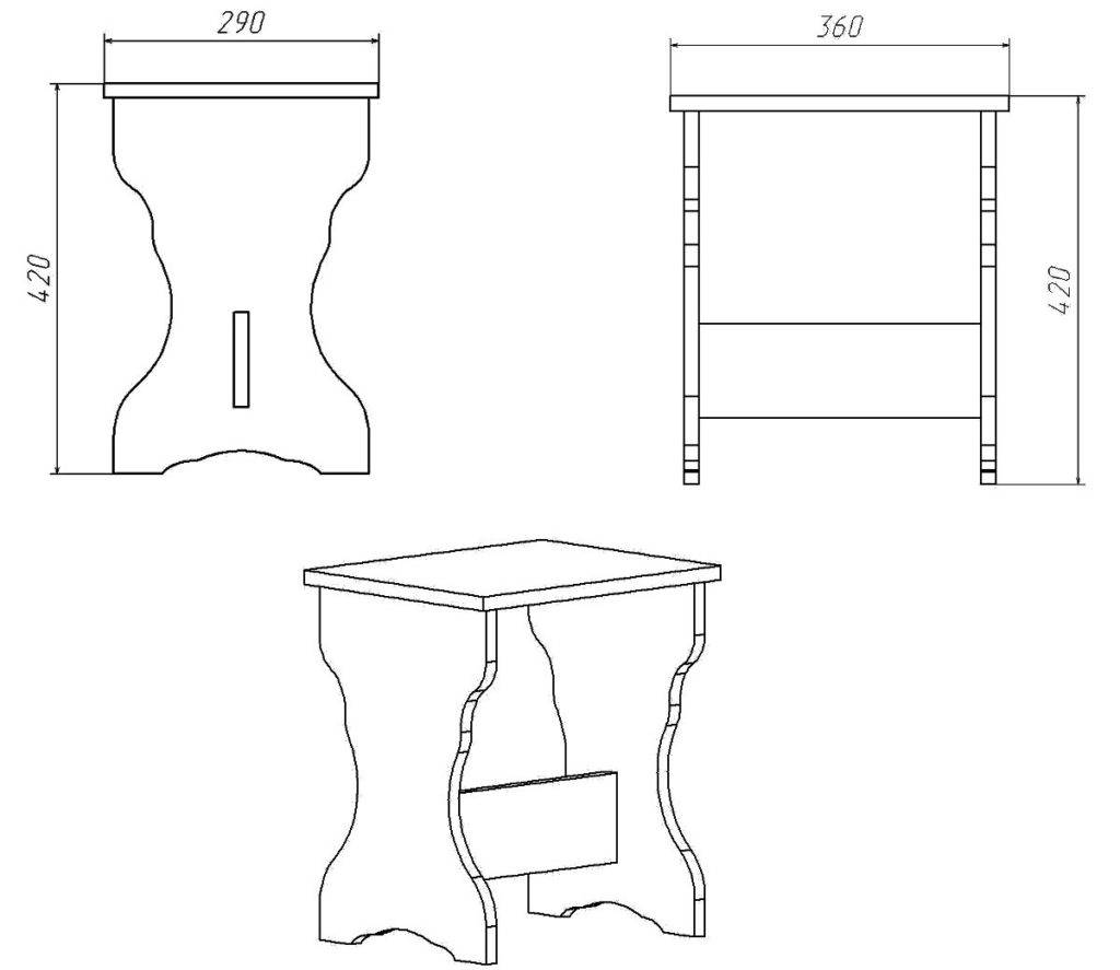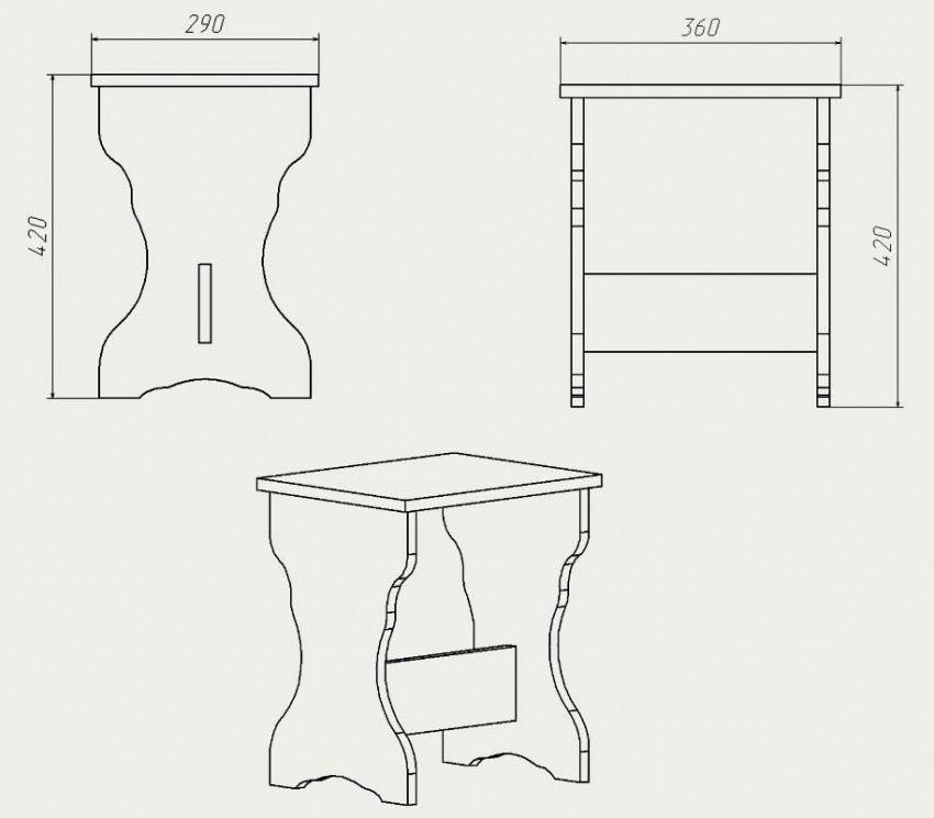 Первым делом составляем чертеж табурета – по нему мы в дальнейшем будем изготавливать все составляющие конструкции.