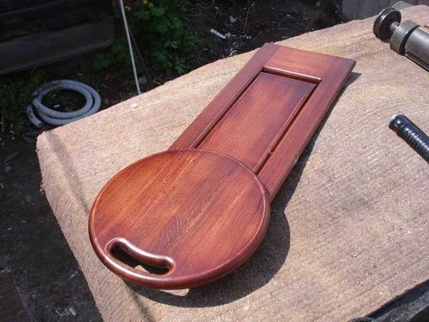 После того, как каркас изделия готов, осталось прикрепить к нему заготовку сиденья, изготовленного по эскизу. Готовый стул покройте несколькими слоями лака и оставьте высыхать около суток.