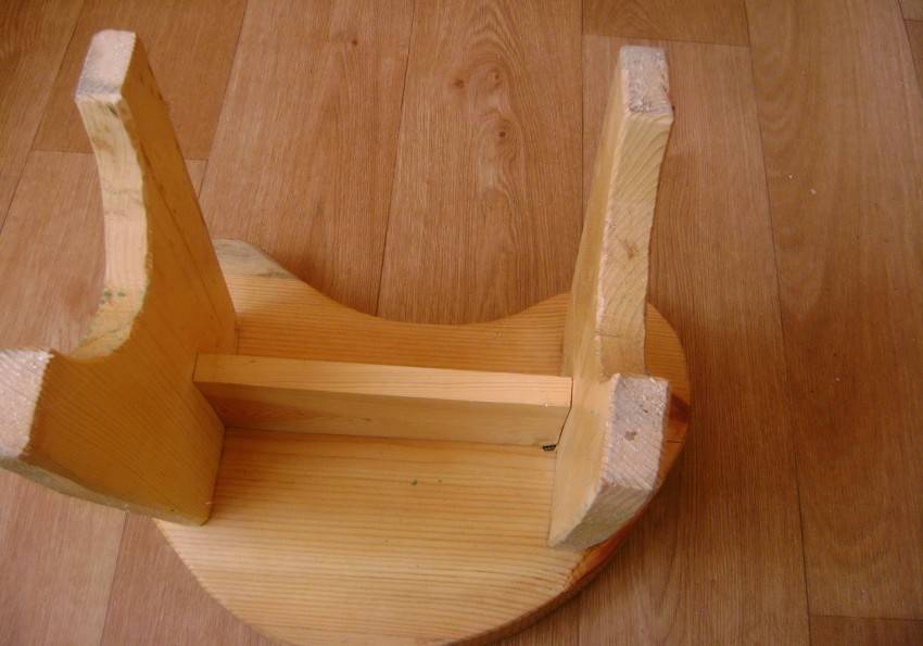 Довольно часто, чтобы табурет был более прочным, дополнительно подготавливают так называемые «сухари» – из бруса сечением 3х2 см вырезают планки со скошенными углами. Эти элементы прикручиваются к перекладинам (царгам) и ножкам.
