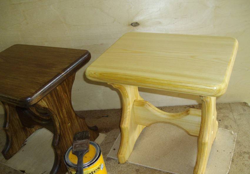 - покрытие табуретки морилкой, лаком;