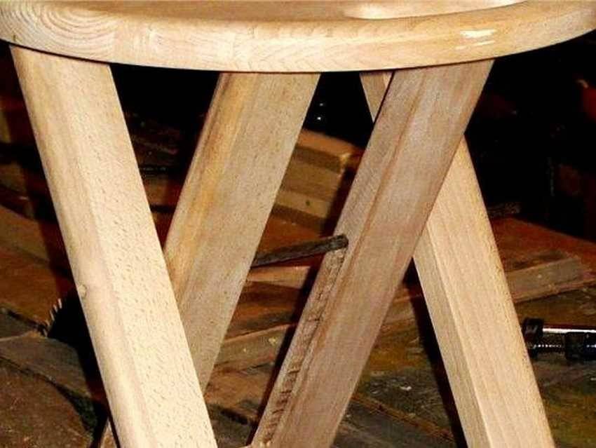 Рассмотрим пример, как сделать табурет своими руками, в котором ножки будут расходиться в разные стороны.
