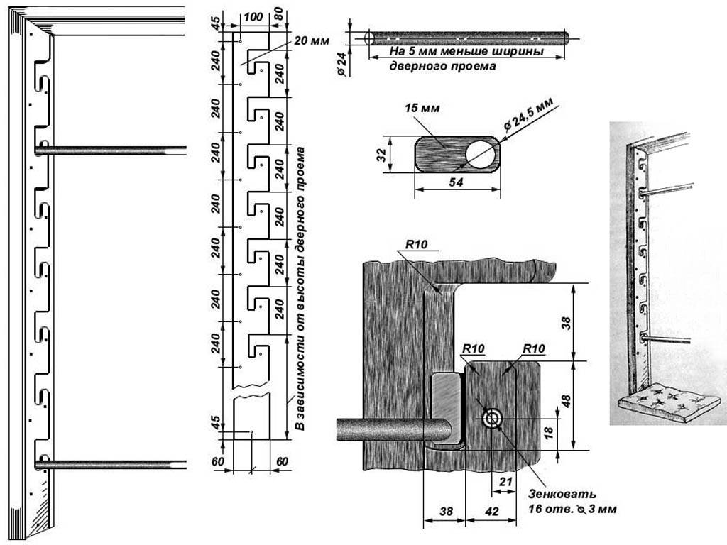 Важная особенность: материал стен, на которые будет опираться труба с пружинами, должен быть очень крепким и износостойким к деформации. Подойдут твёрдые породы дерева, такие как дуб.