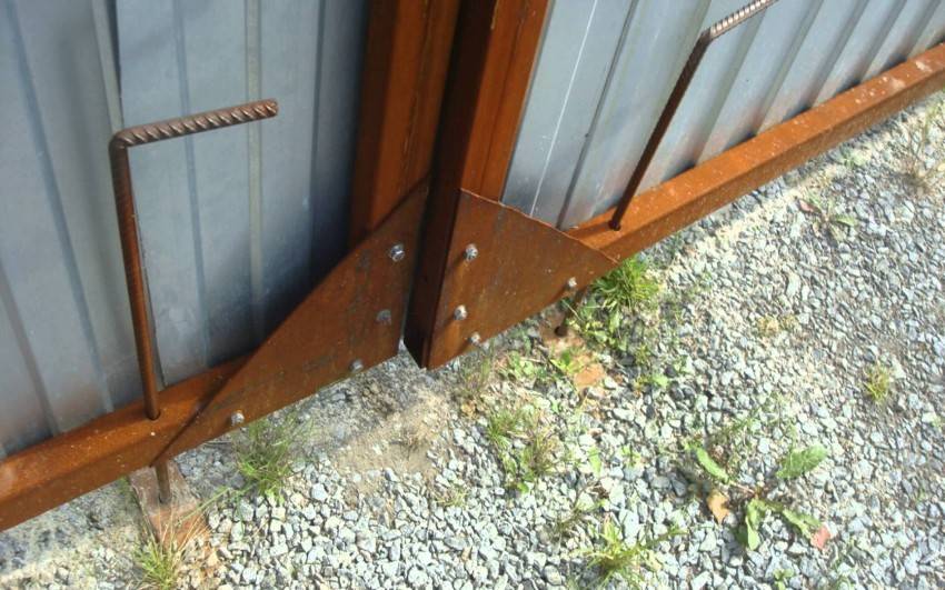 Как видно на фото, конструкция подвески для ворот из металла, устанавливаемых своими руками, достаточно проста: