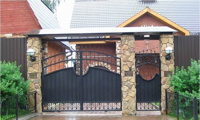 О том, как правильно установить столбы для ворот своими руками, уже было рассказано выше. Напомним: столбы выставляются по вертикали и бетонируются в подготовленных углублениях. То есть, все то же самое.