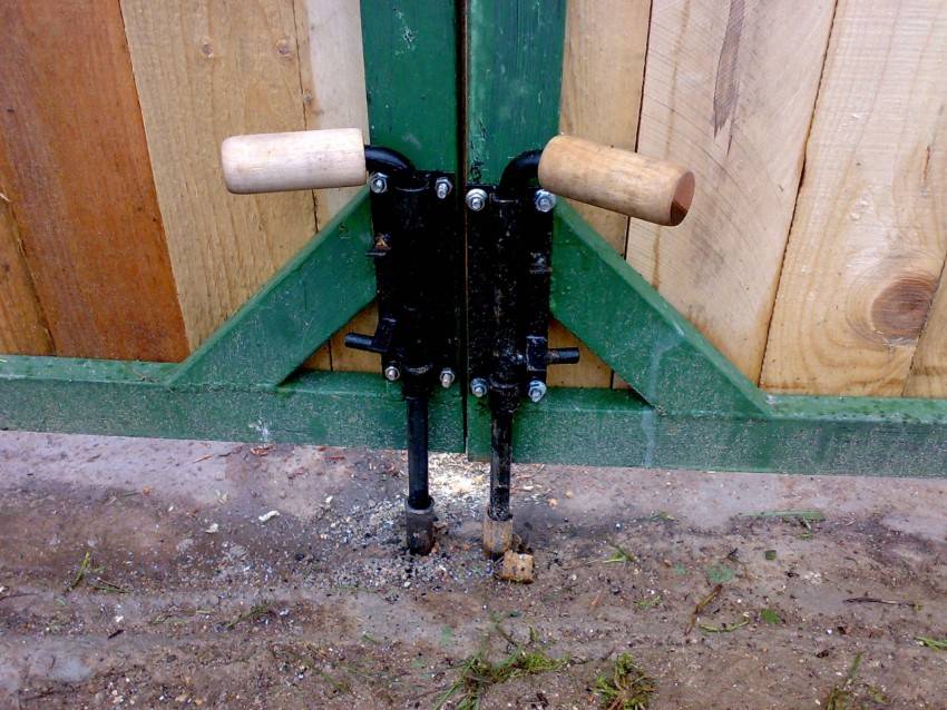 На этом сам процесс изготовления ворот не заканчивается. Есть еще несколько элементов, которые необходимо установить. Это замок, щеколда и ручка для открывания. С металлическими воротами придется опять использовать электросварку. А вот на деревянные эти элементы можно «посадить» на саморезы или болты.
