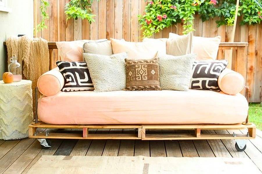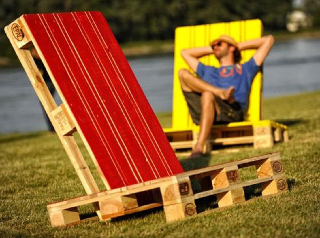 Зона отдыха на даче чаще всего представляет собой обеденную площадку со скамейками и столом. Из обычных паллет можно выполнить оригинальное решение – шезлонги. Такая мебель используется для отдыха в удобной позе (полулежа). Летом, расположившись на шезлонге, можно загорать.