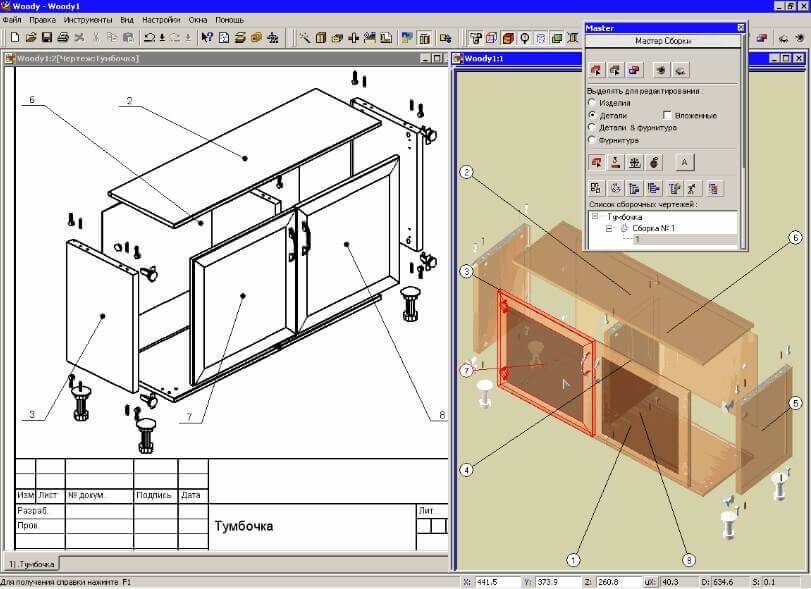 Любая конструкция начинается с предварительного чертежа. Удобнее всего его делать в специальных программах (AutoCAD, Базис-мебельщик и т.п.). Они требуют определенной подготовки, но дают более точный результат и возможность предварительно увидеть проект в 3D формате и правильном масштабе.