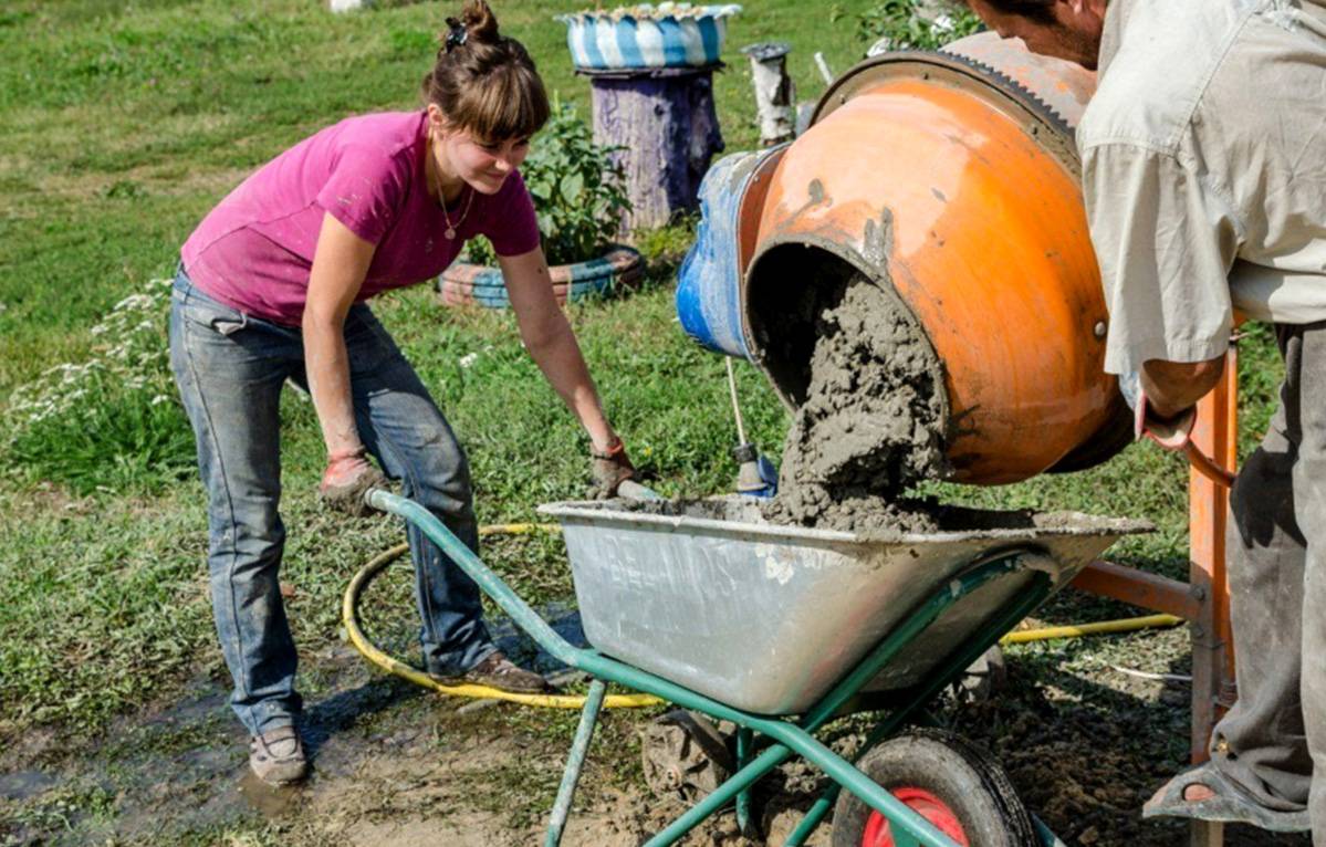 На даче или участке замешивание проводят двумя способами – ручной замес и бетономешалкой. Какой из них использовать, зависит от объемов.