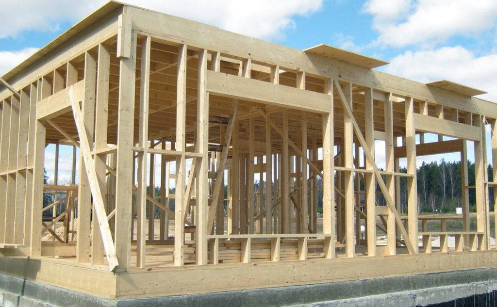Чаще всего для каркаса используют древесину хвойных пород, намного реже – лиственные виды и металл. Для стоек, которые принимают вертикальную нагрузку, лучше всего подойдет клееный брус. Перемычки, которые распределяют вертикальную нагрузку, делают из досок.