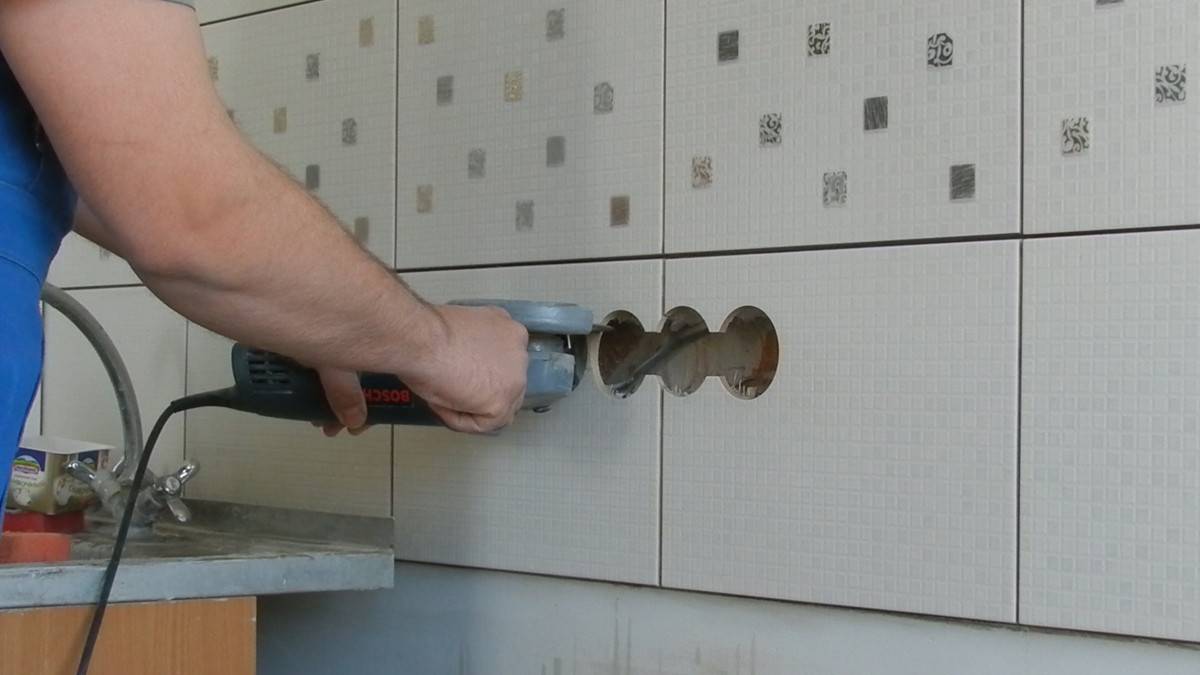 - В этом большой плюс — не нужно тратиться на дорогостоящие алмазные коронки, достаточно приобрести «балеринку» и можно вырезать любое отверстие в плитке под розетки и не только.