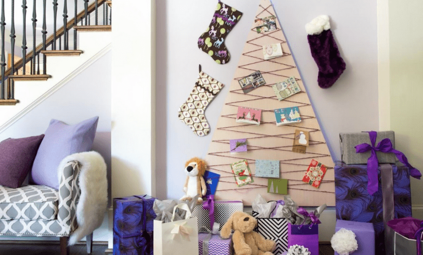 Если площадь квартиры не позволяет установить в ней полноценную елку, а обходиться маленькими искусственными вариантами не хочется, то используйте идеи от ведущих дизайнеров. Сделайте собственную ель на стене. И тогда новый 2020 год отблагодарит вас удачей и успехом.