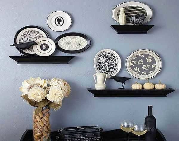 Второй способ расположения тарелок — на полочках
