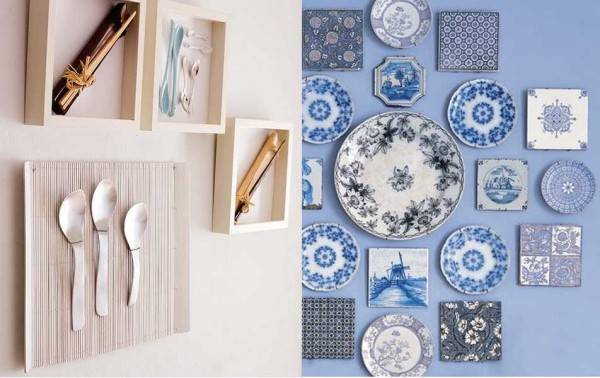 Декор для стен кухни можно сделать из столовых приборов или посуды