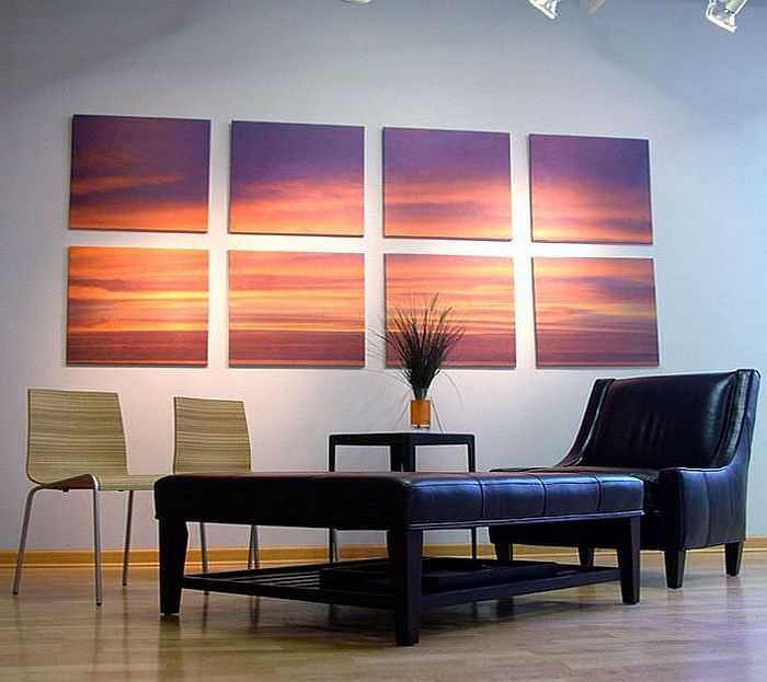 С древних времен стены украшали триптихами, только использовали раньше роспись. Можно расписать стены и сегодня, но для этого требуется немалый талант. Для тех, же у кого с живописью не сложилось, есть другой вариант — разделить понравившееся изображение (фотографию) на несколько фрагментов и в таком виде расположить на стене.