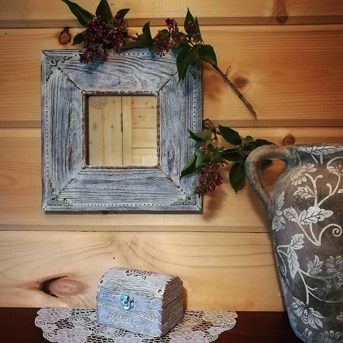 Поместите объекты в рамки. Их предварительно декорируют. Тем самым, Вы повысите оригинальность интерьера.