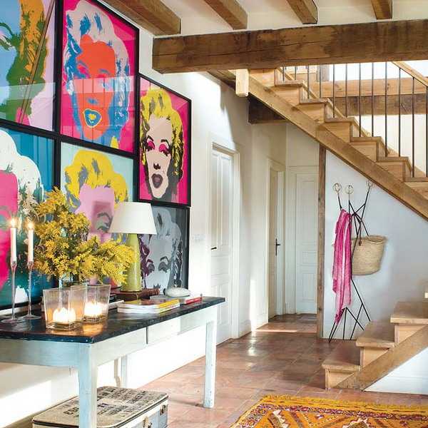 Если стиль помещения ближе к поп-арт или любому другому авангардному направлению, правильно подобрать тематику, да и цветовое оформление коллажа тяжелее. Это уже ближе к искусству, чем просто к дизайну. Как пример — можно поиграть с изображениями или репродукциями авангардистов в разных цветах.