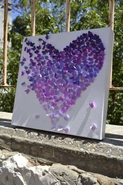 Вешайте украшения на разном расстоянии друг от друга. Часто из бабочек, или цветов создают огромное сердце. В целом это смотрится достаточно эффектно.