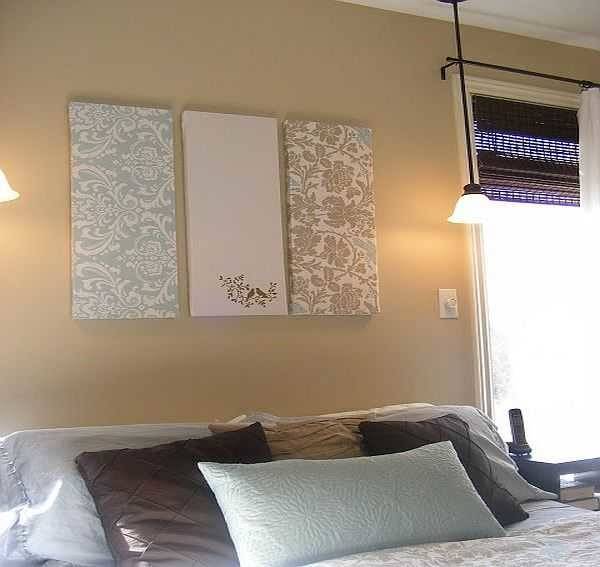 Самый простой способ — сделать настенное панно из одинаковых небольших фрагментов, покрасить их в цвета, близкие к основному или поиграть с одним из дополнительных цветов, уже присутствующих в интерьере.