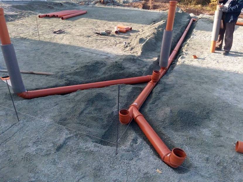 Как правило, канализационные сети к основанию ведут на глубине минимум 0,7 м от поверхности земли, чтобы избежать механических повреждений от трафика людей или при культивации почвы. Для обеспечения самотека гильзу кладут под уклоном от 4 до 7 градусов.