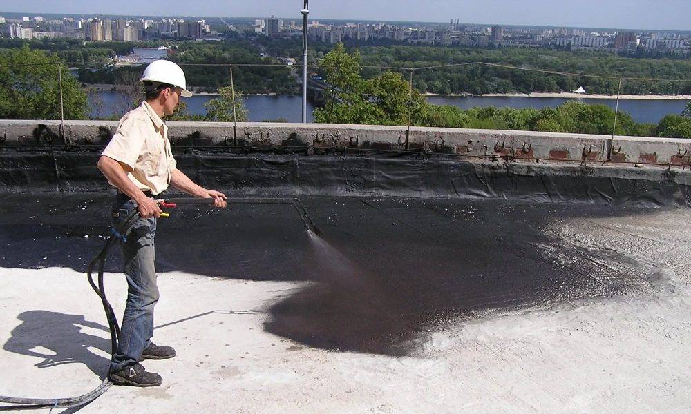 Такие материалы на плоской крыше могут быть использованы только в том случае, если она является неэксплуатируемой. Сразу стоит отметить преимущество таких покрытий. Благодаря наливному или напыляемому методу нанесения кровельная плоскость получает очень хорошую защиту от влаги. Жидкий рубероид или резина состоит из специально созданного каучука и включает в себя всевозможные добавки. Некоторые разновидности такого продукта могут наноситься кистью и валиком, но для других потребуется специальное оборудование, которое по карману только кровельным организациям.