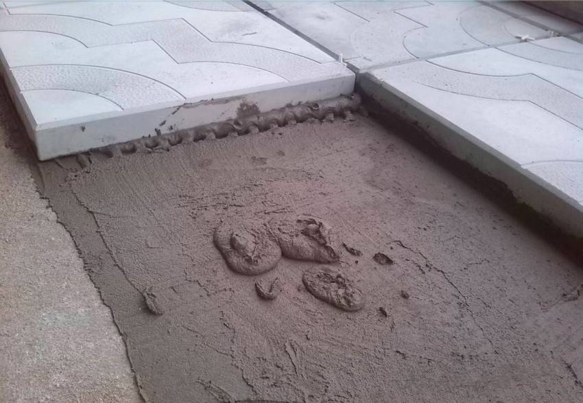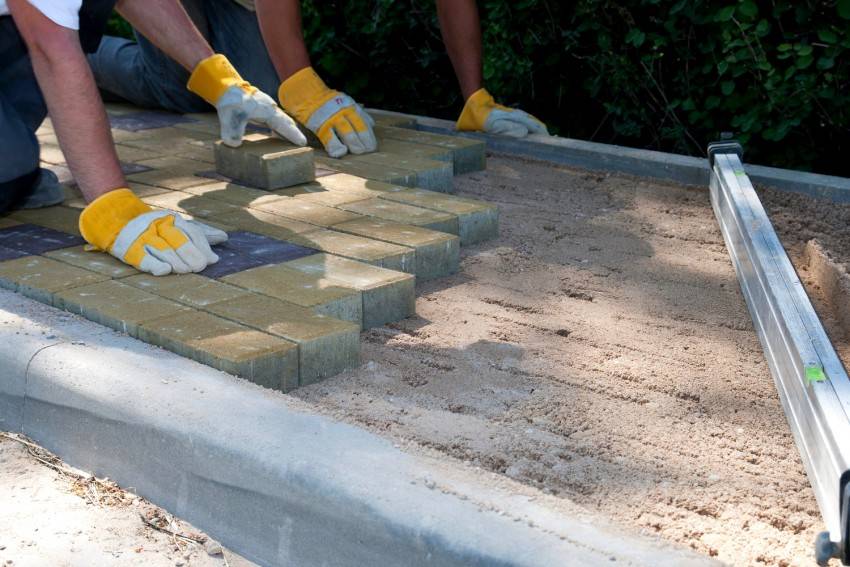 Важно! После заливки должно пройти около пяти дней, чтобы он затвердел. Только после этого выполняется укладка на бетонное основание.. Что касается кладки на песок и цемент, то используется сухая перемешанная смесь