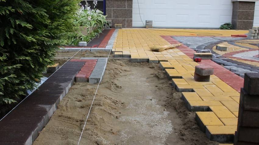 Чтобы материала хватило на все работы и при этом не осталось много лишнего, нужно сделать на участке разметку и измерить периметр будущих тротуаров и площадок, а также подсчитать их площадь. На основании этих параметров будут проводиться дальнейшие подсчеты.