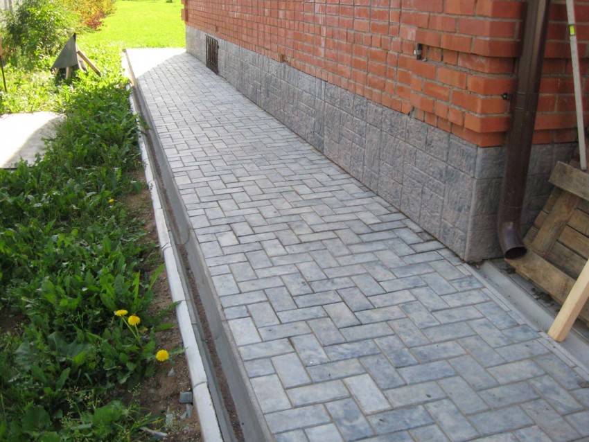 *Это нужно для того, чтобы бортовой камень не мешал отведению воды, а наоборот, способствовал её стеканию. Установка поребрика, препятствует расшатыванию и «расползанию» плитки из «нужного русла».