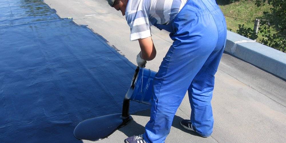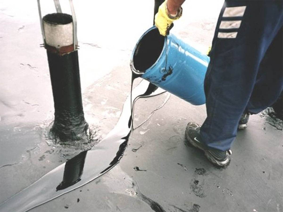 Теперь содержимое банки или ведра после тщательного перемешивания выливают на плоскость крыши и равномерно по ней распределяют любым малярным инструментом: кисточкой, валиком или шпателем. Основная задача производителя работ – проводить заливку без остановки, чтобы на плоскости не образовались затвердевшие стыки двух слоев.