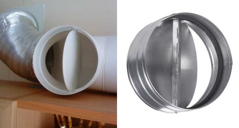 Обратный или антивозвратный воздушный клапан представляет собой легкую пластиковую или металлическую пластину. Она подвижно крепится в двух местах к трубе — вверху и внизу, лепестки подпираются несильной пружиной. Пока вытяжка не работает, клапан перекрывает доступ воздуху снаружи. Когда вытяжка включается, поток воздуха отгибает пластину вперед, отжимая пружину. Как только вытяжка выключена, пластина при помощи пружин возвращается на место. Если установить вытяжку без этого клапана, зимой в кухне может быть слишком холодно — наружный воздух будет без проблем попадать в помещение.