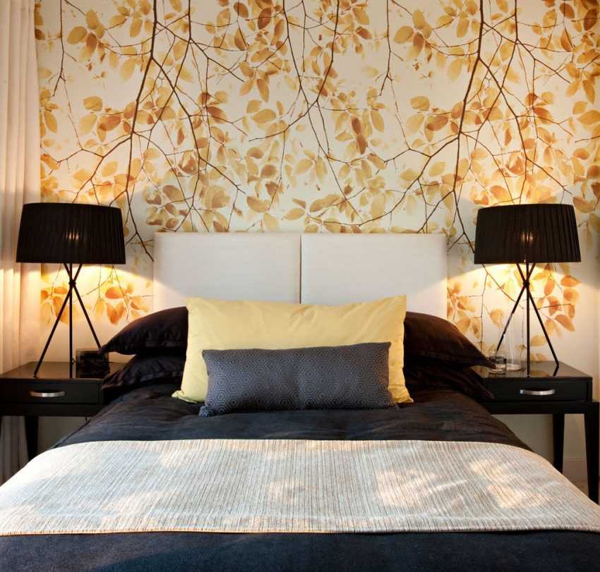 Если вы хотите оформить спальную комнату, используя современные варианты, вы можете смело добавлять обои с замысловатыми узорами, геометрическими фигурами, с морской тематикой. Это могут быть пейзажи или изображения цветов, выполненные в акварельной технике.