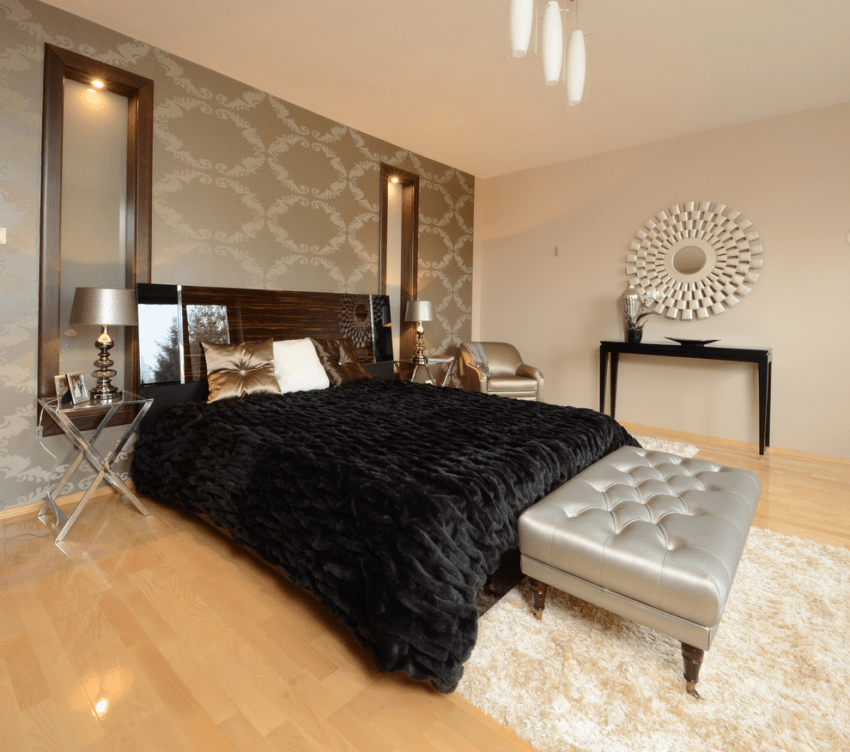 Следует учитывать расположение спальной комнаты. Например, если окна выходят на северную сторону, лучше не применять обои холодных оттенков.