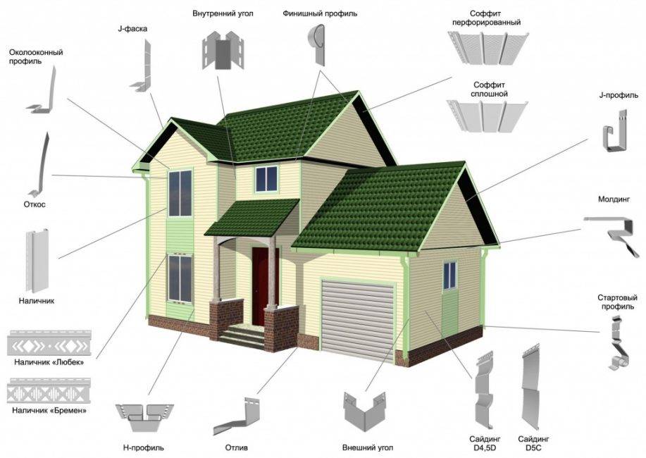 Перед монтажом сайдинга следует узнать, сколько панелей, соединительных, угловых, наружных профилей, а также элементов, обрамляющих окна, софитов, ветровых досок вам понадобится.
