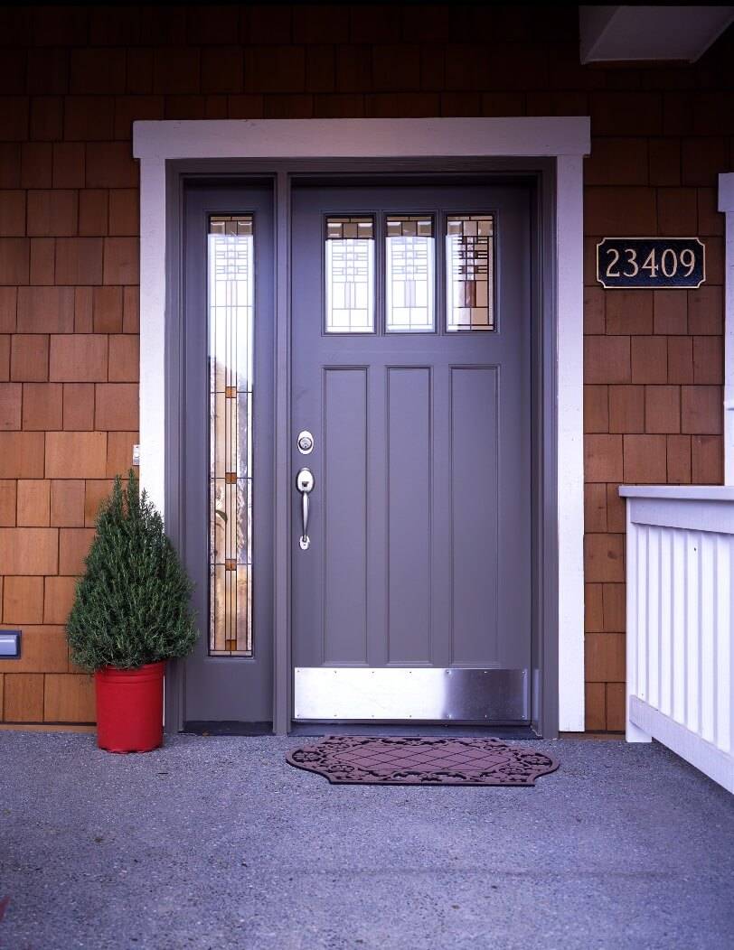 Другой бюджетный вариант оформления стальной двери — порошковое напыление. Снаружи такая отделка смотрится еще более надежно, соответствует современному стилю жилья.