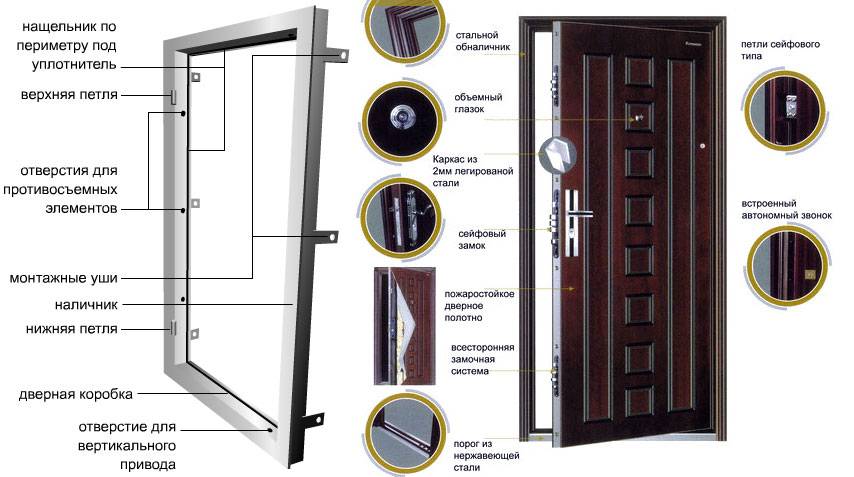 Для более надежной защиты в некоторых современных моделях дверей петли скрыты, предусмотрены противосъемные штыри.