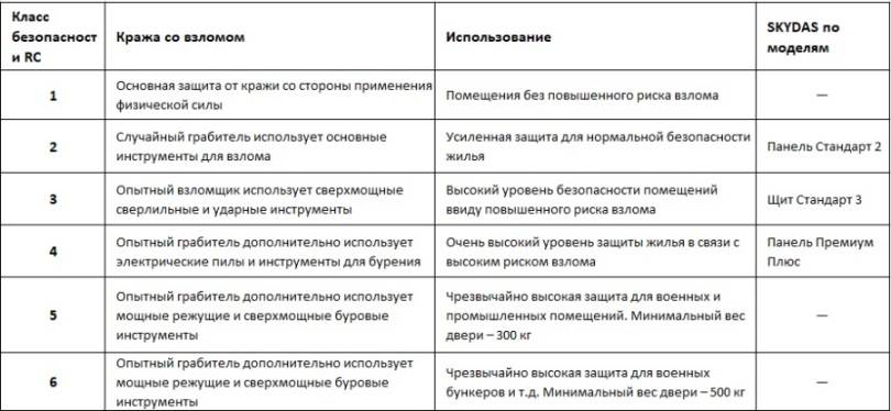 - Пятый, шестой, седьмой класс- конструкции для применения в банках, офисах, помещениях, предназначенных для хранения ценностей.