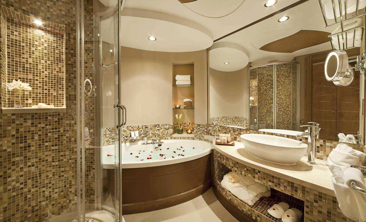 - Сочные оттенки бирюзового, золотого, красного – используются, в основном, для создания акцентирующих мотивов. Ванная, полностью выложенная слишком яркой плиткой, будет вызывать эмоциональное напряжение;