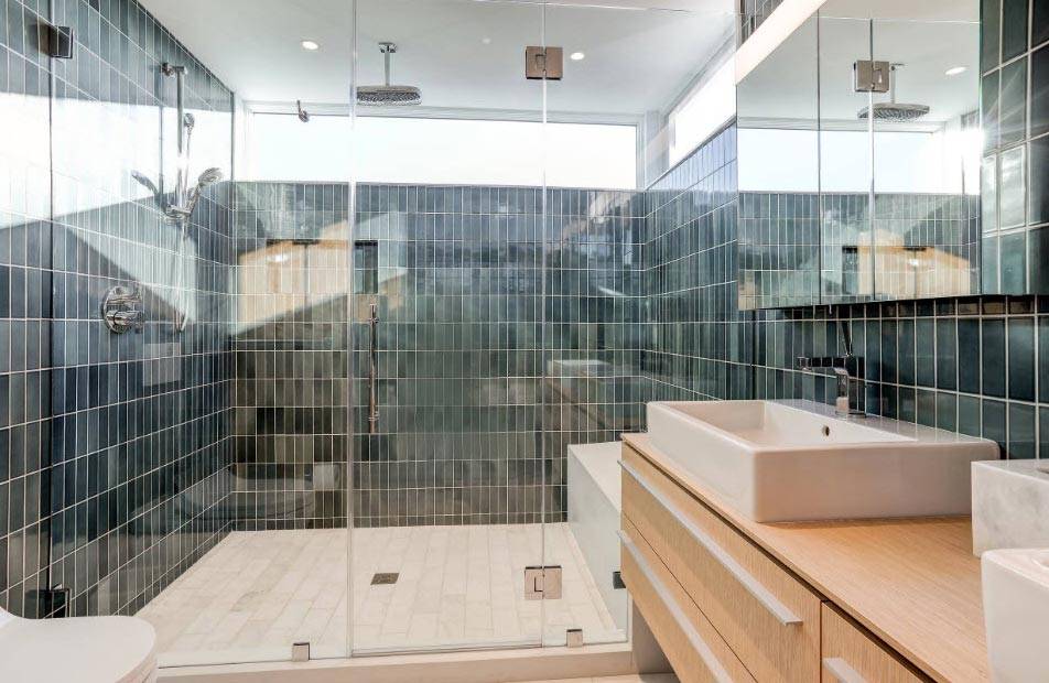 - Голубая или зеленая плитка – создает ощущение прохлады, свежести, заряжает бодростью;