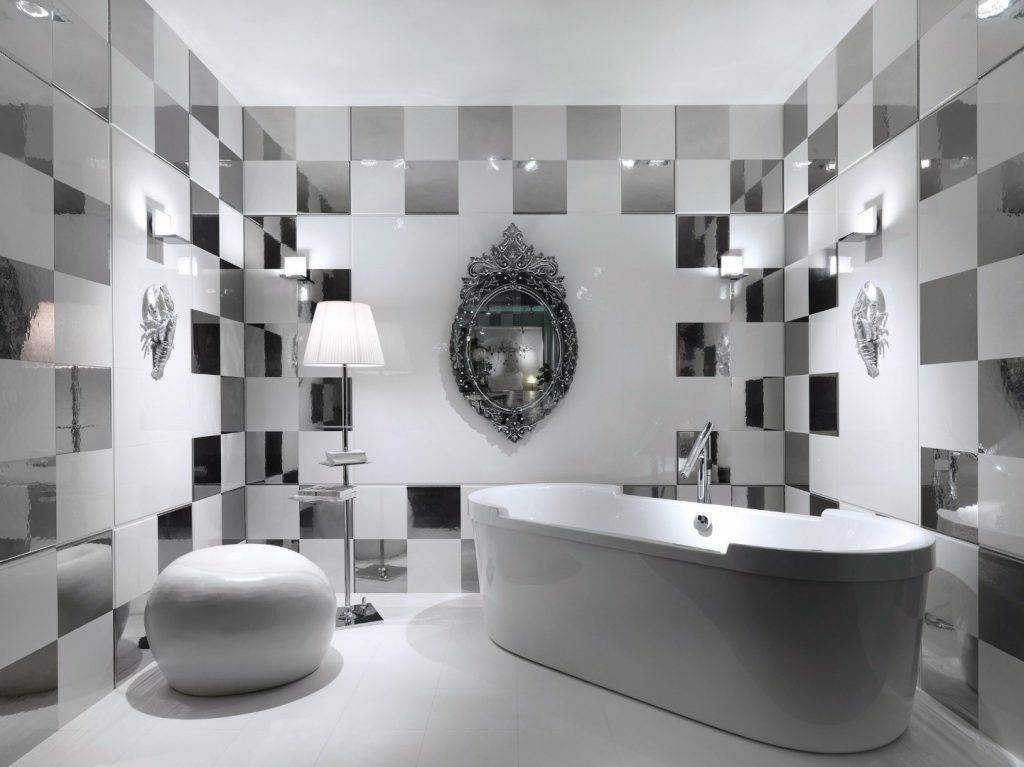 Плиточная поверхность выполняется матовой, глянцевой, зеркальной. Для создания самого интересного эффекта, все три вида, в различных пропорциях, допускается использовать в пределах одного помещения.