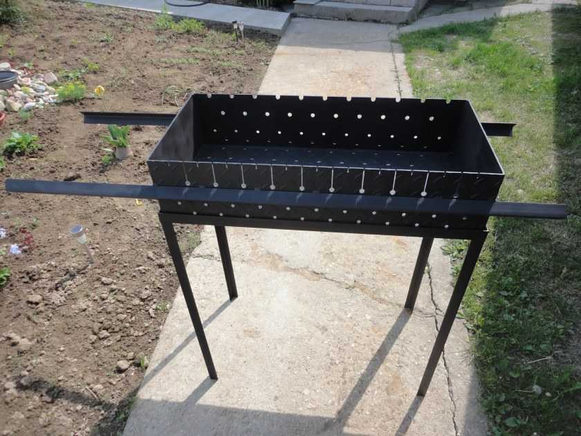 - Высота бортов короба должна быть больше 15 см. Такая глубина будет достаточной для того, чтобы сжечь необходимое количество дров (угля) и равномерно прожарить шашлык. Низкие борта (меньше 15 см) сокращают расстояние между углями и мясом на шампурах. При этом шашлык подгорает, но не прожаривается.