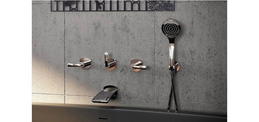 Отличаются ультрасовременным дизайном, лаконичностью и компактностью. Смеситель встраивается в стену. С наружной части стены остаются только вентили и кран. Всё остальное спрятано с внутренней стороны. Выглядит такой смеситель необычно и эффектно. Но у него есть 3 весомых недостатка: