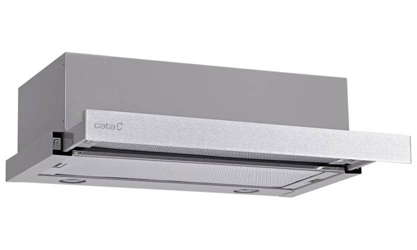 Производительность прибора — 300 м3, что почти в два раза ниже, чем в модели CATA TF 2003 600 duralum. При работе вытяжка, выполненная в металлическом серебристом корпусе, потребляет 180 Вт. Реализованы 3 скорости режима. Работает по принципу отвода и рециркуляции воздуха. Управляется модель ползунком. Максимальный уровень шума – 62 дБ, освещение предусмотрено галогеновыми лампами. В комплекте — сменный жировой фильтр. Цена — 5990 рублей.