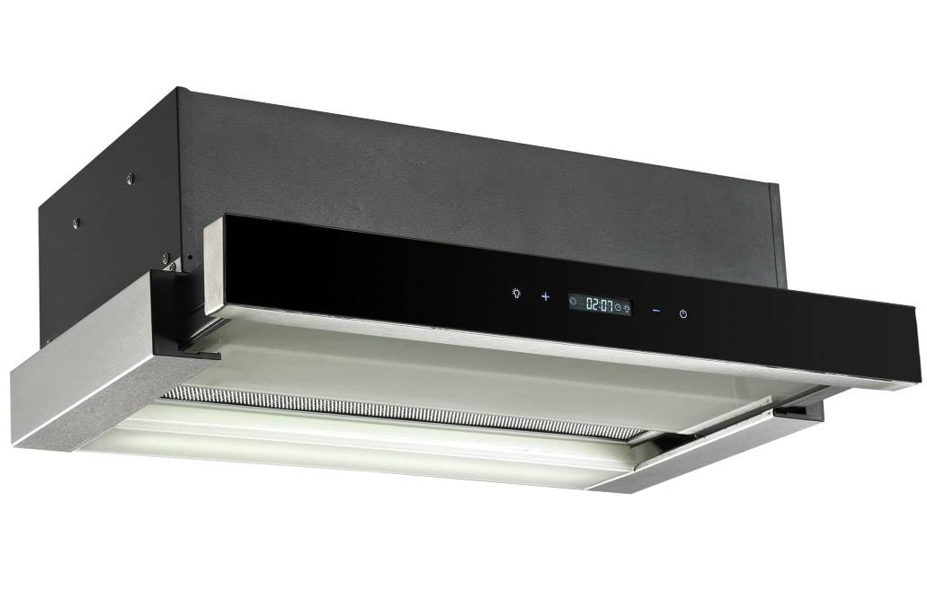 Панель вытяжки в выключенном состоянии может быть спрятана (задвинута) в корпус, что позволяет экономить пространство. Такой тип вытяжек актуален для малогабаритных кухонь, правда, они, как правило, обладают малой мощностью.