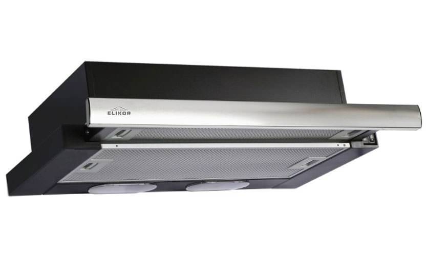 Модель чёрного цвета в металлическом корпусе. При работе потребляет 100 Вт. Показатель ниже, чем у прибора Эликор Интегра 60. Вытяжка работает в режиме отвода и рециркуляции воздуха с максимальной производительностью 650 м3. Выбор скорости из двух возможных — кнопочный. В комплекте есть жировой фильтр. Рабочая поверхность освещается двумя светодиодными лампами. Цена — 5800 рублей.