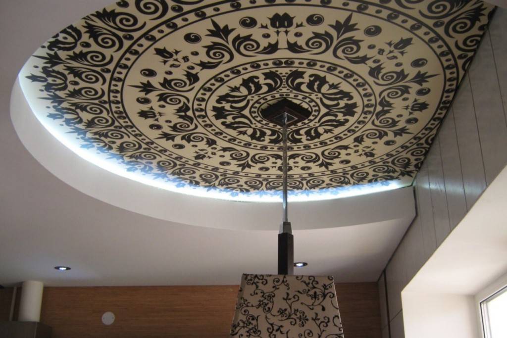 Часто как раз такой цвет больше всего подходит под различные интерьеры. А чтобы поверхность не выглядела скучно, не забывайте о том, что ее можно оживить красивой люстрой, точечными светильниками или светодиодами, элегантным орнаментом или узором.