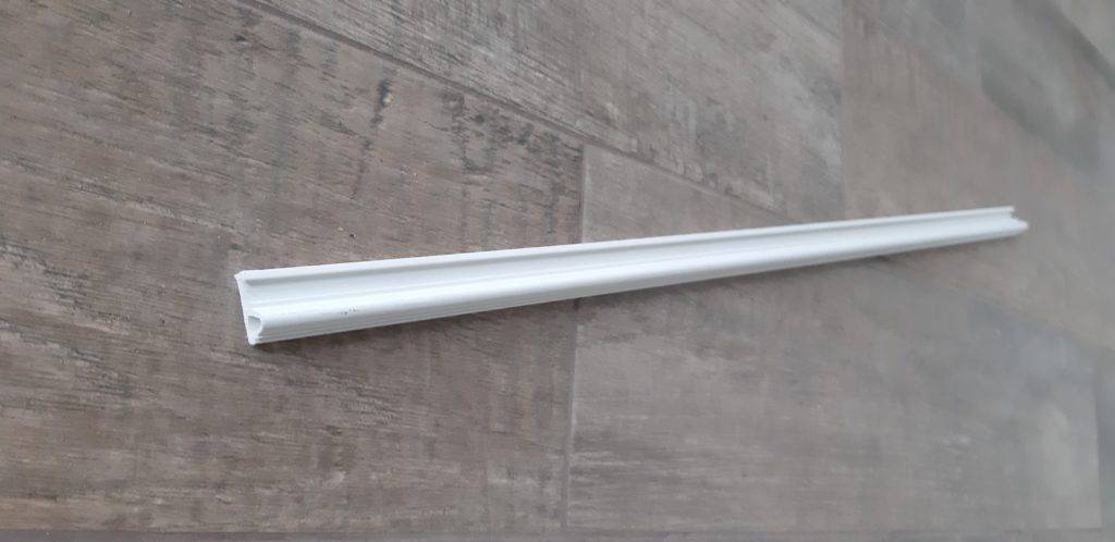 Параметры потолочного карниза зависят от модели. Шинные варианты полностью занимают длину стены, а багетные закругленные виды располагают строго по ширине проема. Классические разновидности должны быть на 40 см длиннее стеклоблока. С каждой стороны остаются по 20 см свободного профиля.