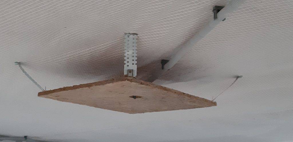 Под них устанавливают закладные, крепя их на подвесы. Параллельно с этим (если число монтажников в бригаде позволяет), или после этого, устанавливают профиль. Его крепят к стенам, предварительно отбив уровень. В зависимости от материала стен, багет «садят» на дюбеля, или просто саморезы.
