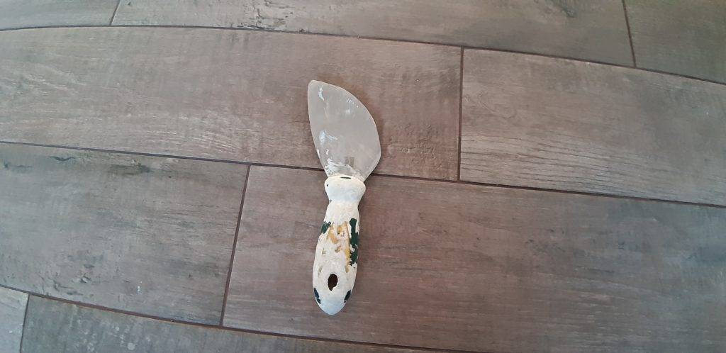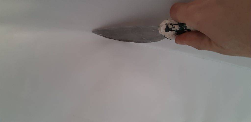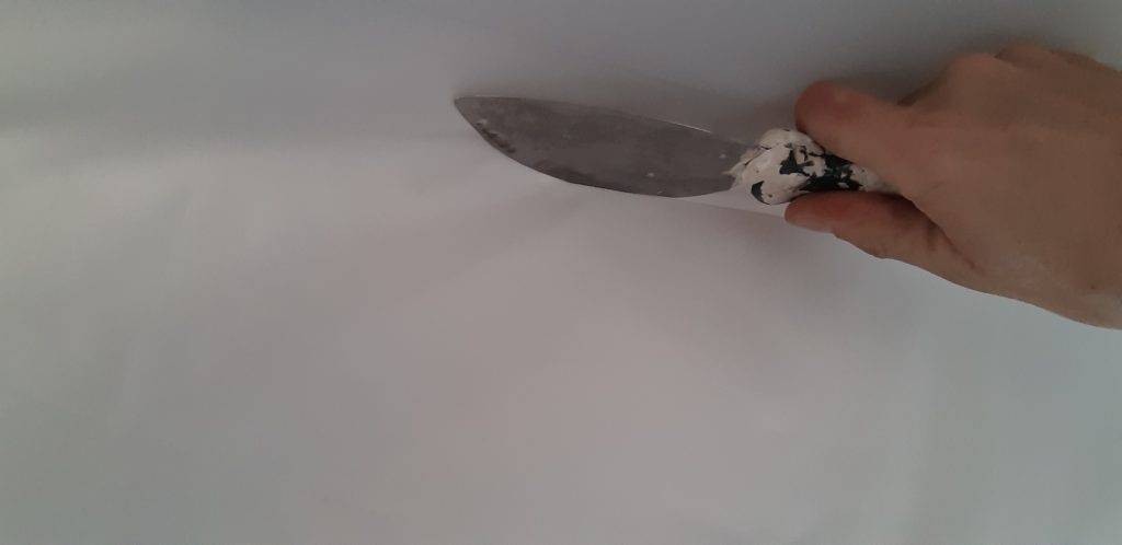 Существуют профессиональные шпателя для монтажников натяжных потолков, но я сделал свой из обычного 10 см шпателя и болгарки.
